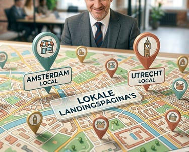 Wij creëren specifieke conversiegerichte pagina's voor elke regio waarin jij actief bent (bijv. dienst-amsterdam.nl, dienst-utrecht.nl).